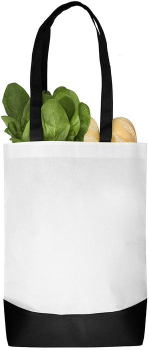 Bolsa ecológica blanca con detalles de color en asa y base de la bolsa. Mayor resistencia debido a que son cosidas.
