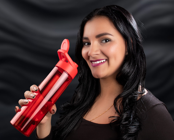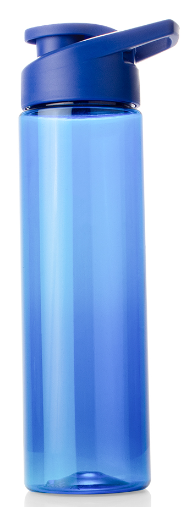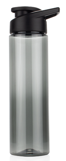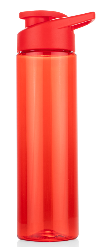 Botella deportiva con tapa a presión y agarradera para transportar fácil. Capacidad de 600ml.