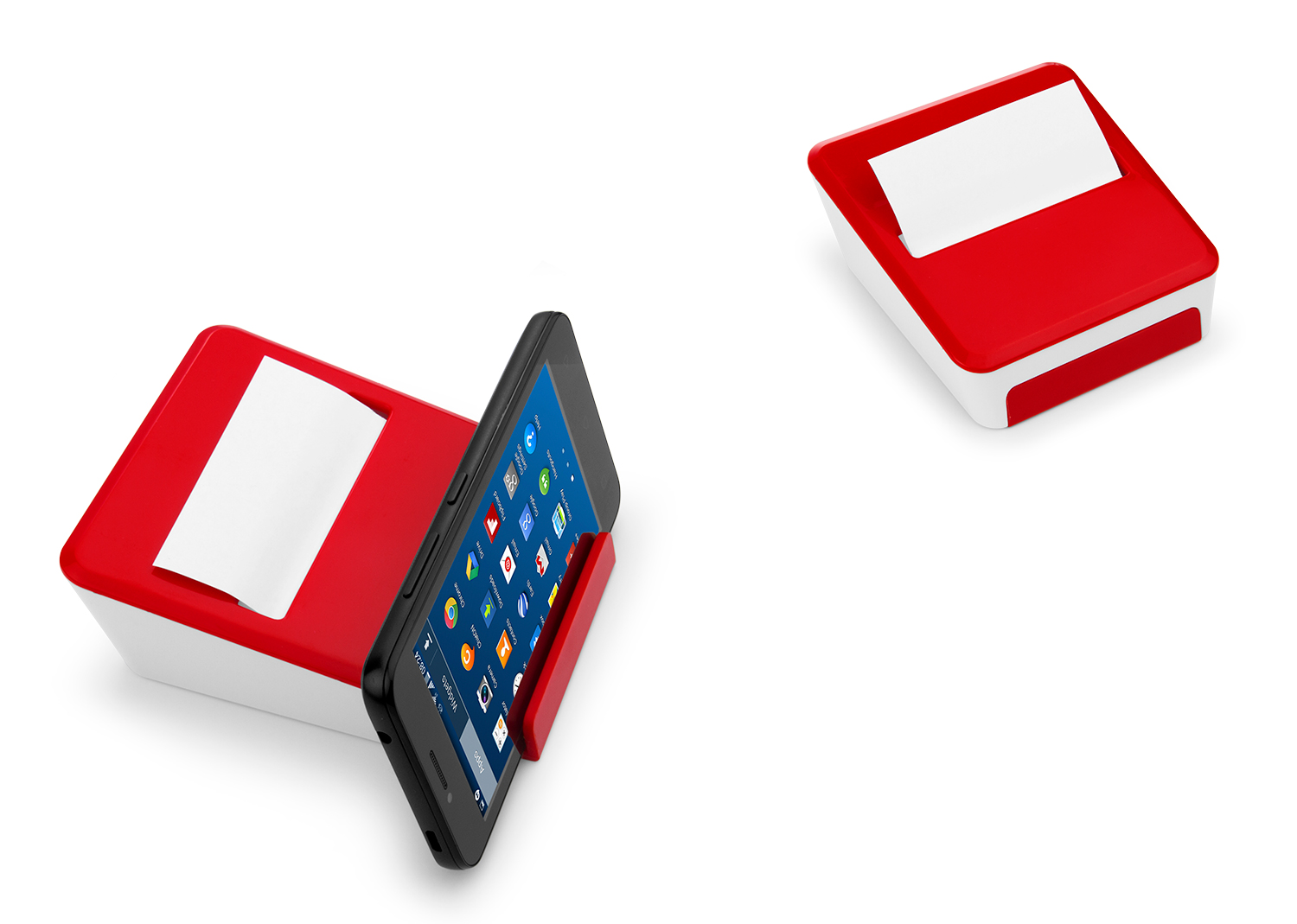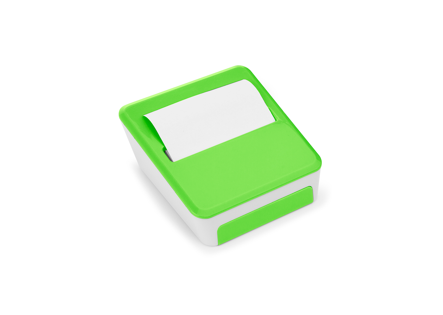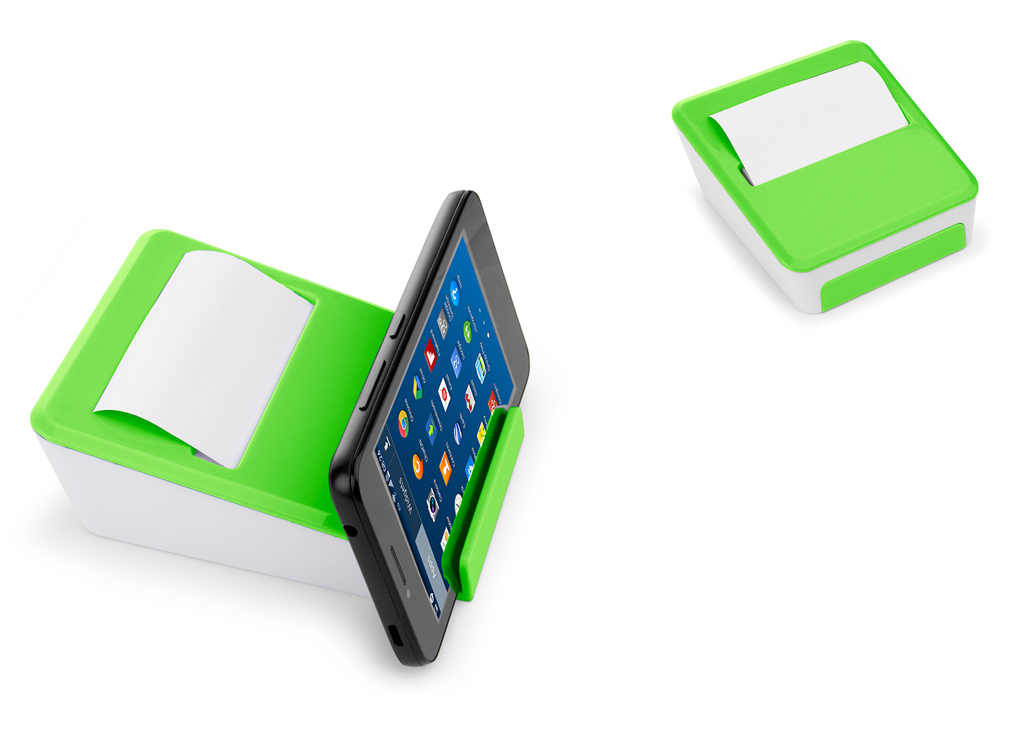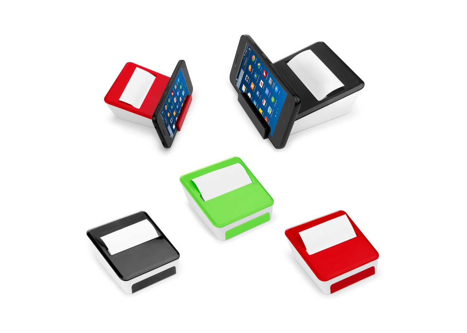 - Dispensador de hojas adhesivas con holder para celular. Incluye 100 hojas blancas.