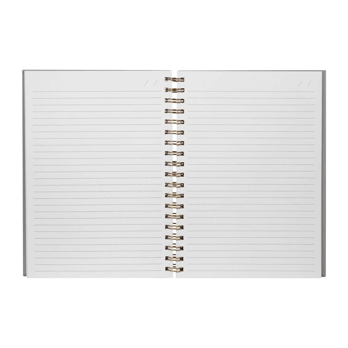 Libreta ecologica con 120 hojas a rayas. Cubierta rigida de carton, amigable con el medio ambiente y espiral metalico doble. Ideal para tomar apuntes, llevar un diario personal o hacer bocetos creativos, sin duda es la aliada perfecta para plasmar tus pensamientos y proyectos con estilo.