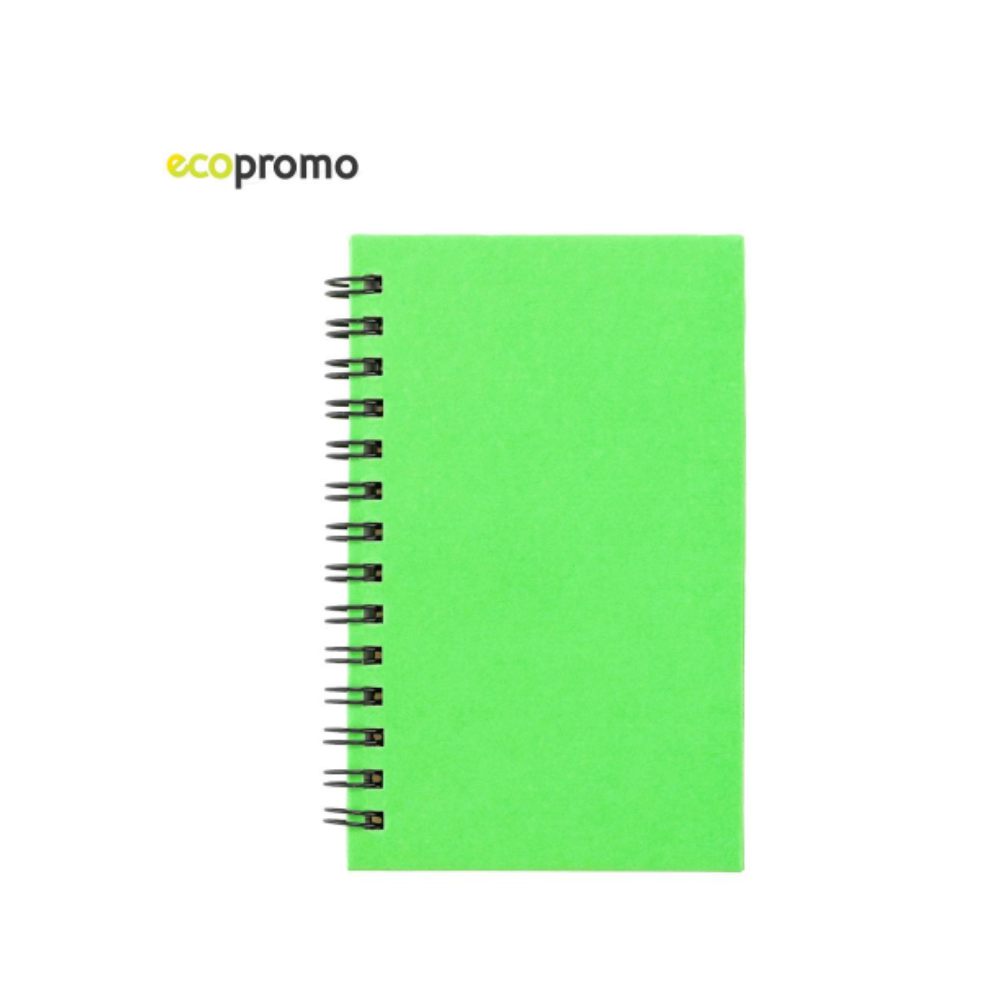 Libreta reciclable argollada doble O, con taco de 40 hojas, mini taco de hojas autoadhesivas y set de 5 sticker de colores