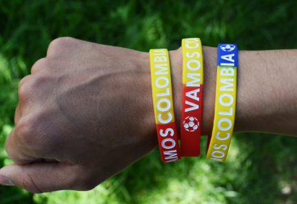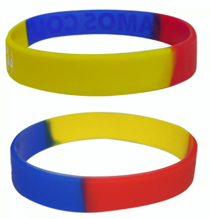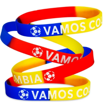 Siliconadas con la bandera de Colombia, en bajo relieve e impresión a 1 tinta.