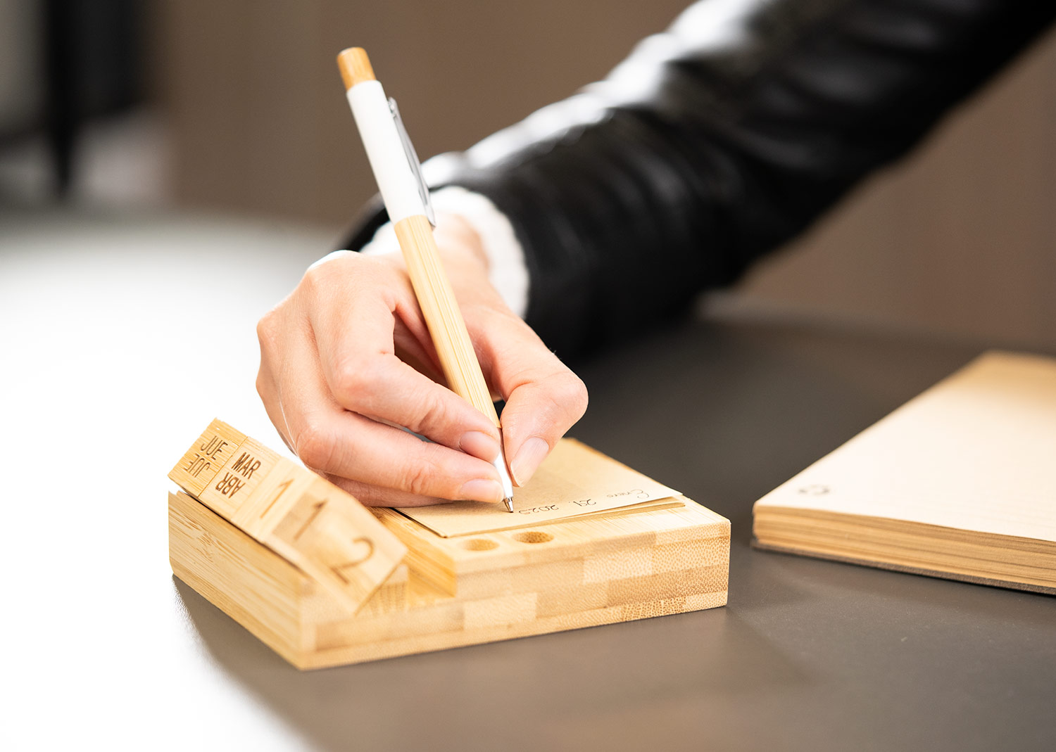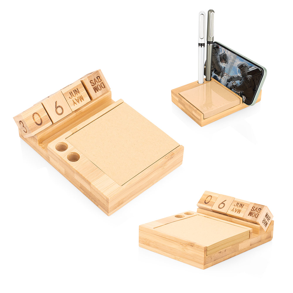 Porta notas de bambú con calendario. 100 páginas de papel tipo kraft.