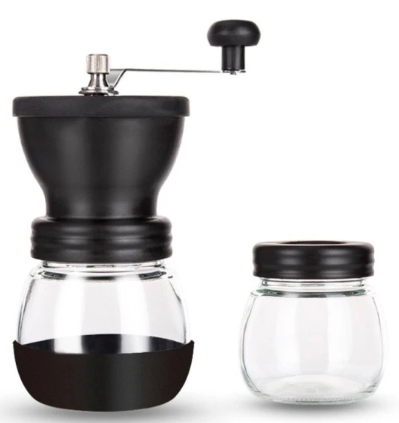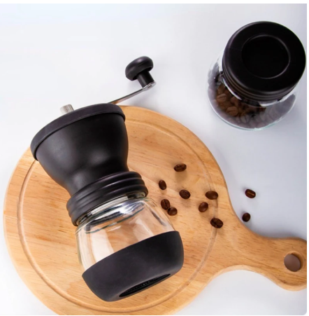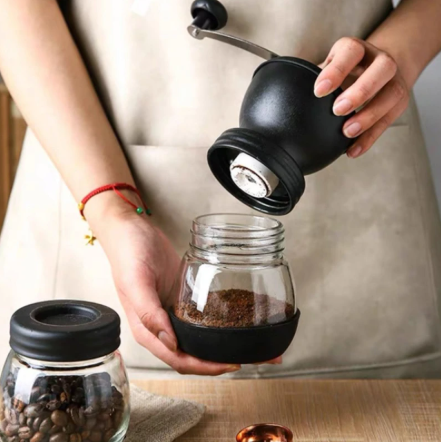 Molino manual con 3 niveles de molienda en acero inoxidable para granos de café y especias.