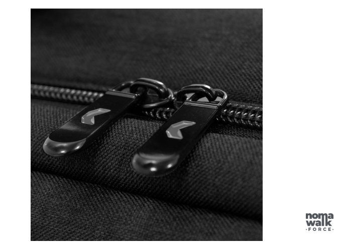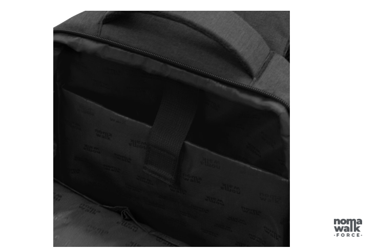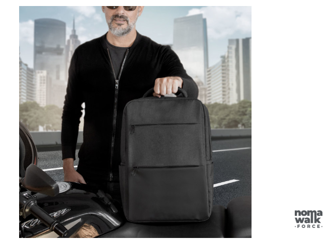 Morral portanotebook de hasta 15 pulgadas. Compartimento principal con bolsillo acolchado para la notebook y bolsillo organizador. Frente con 2 bolsillos horizontales con cierre y 2 bolsillos laterales. Forro Nomawalk impreso negro. Asa superior, correas y respaldo acolchados. Correas ajustables. Tira para sujetar la mochila en la manija extensible de un equipaje de mano. Tiradores de cierres metálicos color negro.