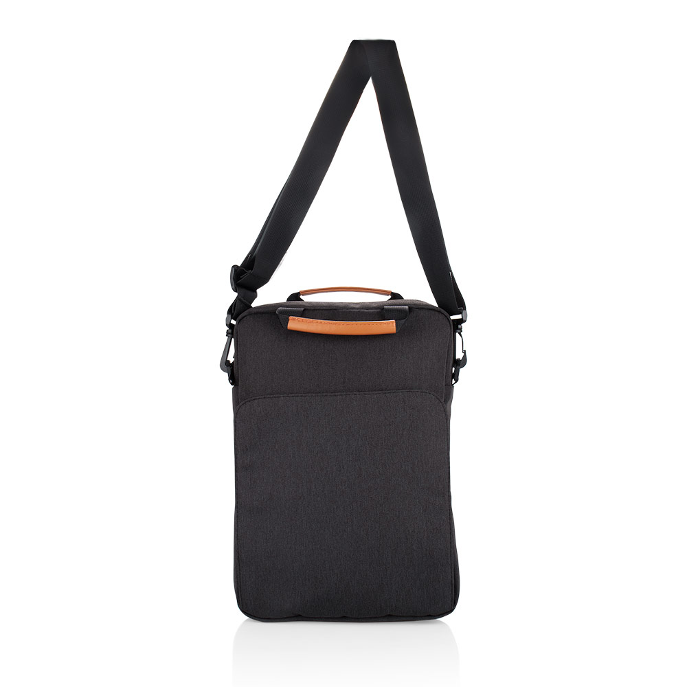 Este morral manos libres está diseñado para transportar tu portátil con comodidad y seguridad. Incluye un bolsillo interior forrado en tela polar que protege tu dispositivo. En la parte frontal, cuenta con un bolsillo con cremallera que alberga compartimentos internos para organizar tus accesorios. La correa es ajustable y desmontable, gracias a los ganchos situados en ambos extremos, permitiendo adaptarla a la longitud deseada o retirarla según tus necesidades.
