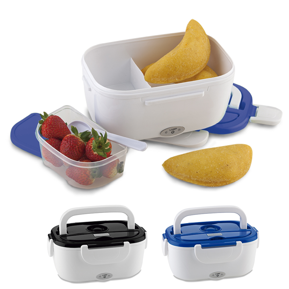 Portacomidas eléctrico con dos compartimentos. Incluye un porta ensalada interior que se retira para calentar, cubierto y tapa de seguridad. Nota Importante: Este portacomidas no cocina los alimentos, toma aproximadamente una hora en calentarlos a una temperatura aceptable, y los mantiene tibios mientras esté conectado. Retire el tapón de caucho de la tapa al conectar. Empaque Caja Individual.