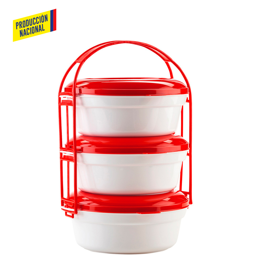 Set de portacomidas por 3 unidades en polipropileno, apilables para fácil almacenaje.