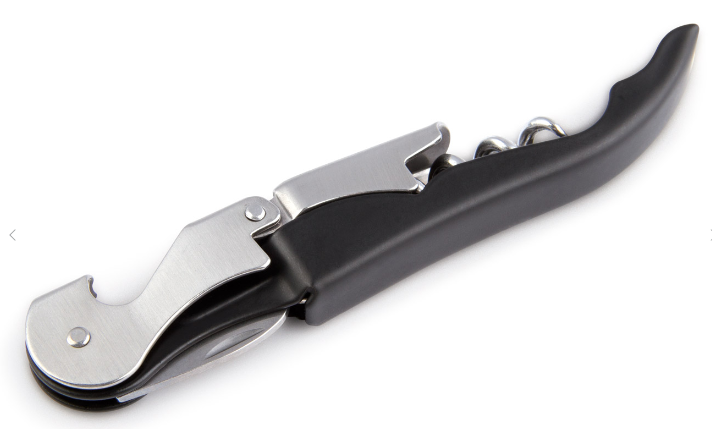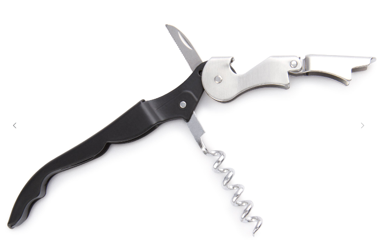 - Sacacorchos de 2 tiempos, con destapador de botellas y navaja.