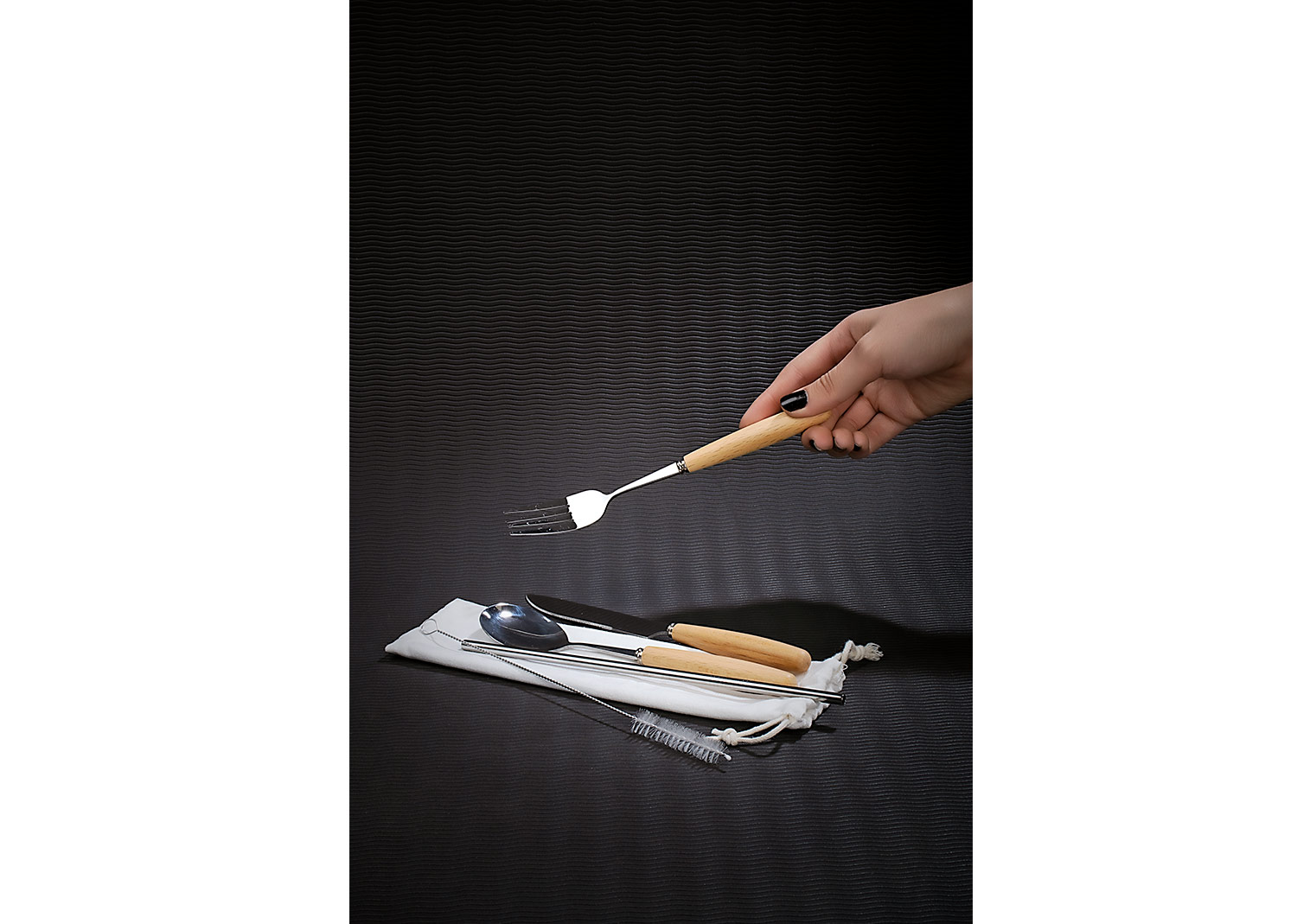 Set de Cubiertos en Acero inoxidable con mango en bambú, Bolsa de algodon para guardar, incluye Tenedor, Cuchara, Cuchillo y Pitillo con cepillo para limpiarlo. Sugerencias de cuidado y limpieza de pitillos: Dejar sumergido en agua con sal, durante dos horas y antes de su primer uso. Esto para prolongar la vida útil del producto. Posteriormente se puede lavar con agua y jabón y secar al aire. Producto de uso personal. No se aceptan devoluciones.