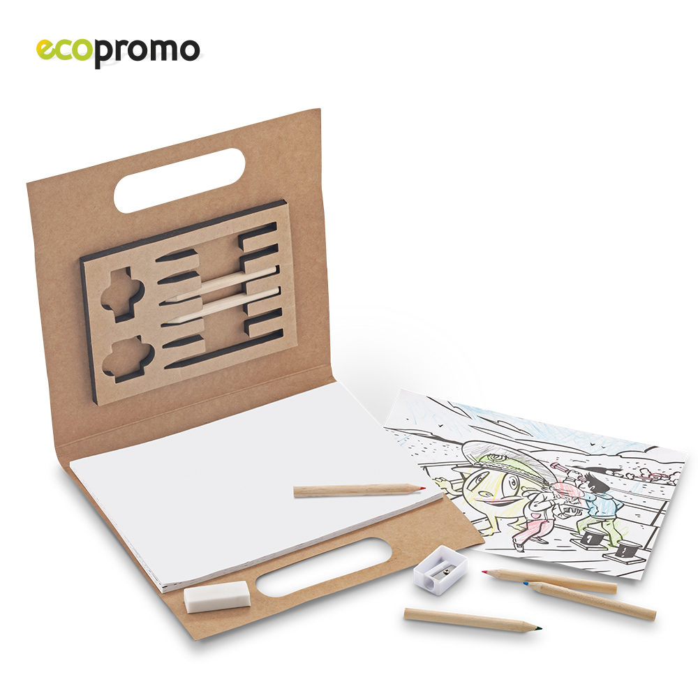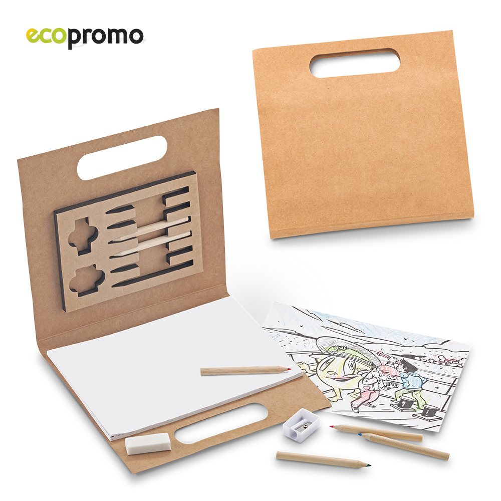 Estuche de dibujo de 30 páginas aprox, incluye borrador, 6 colores y un tajalápiz.