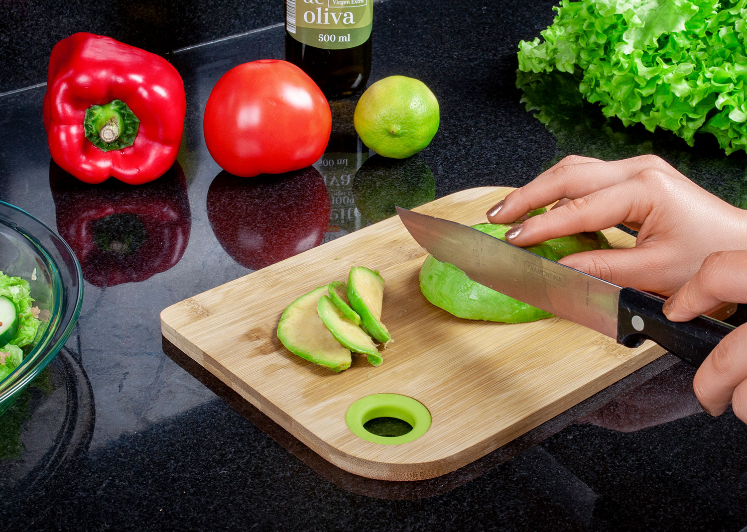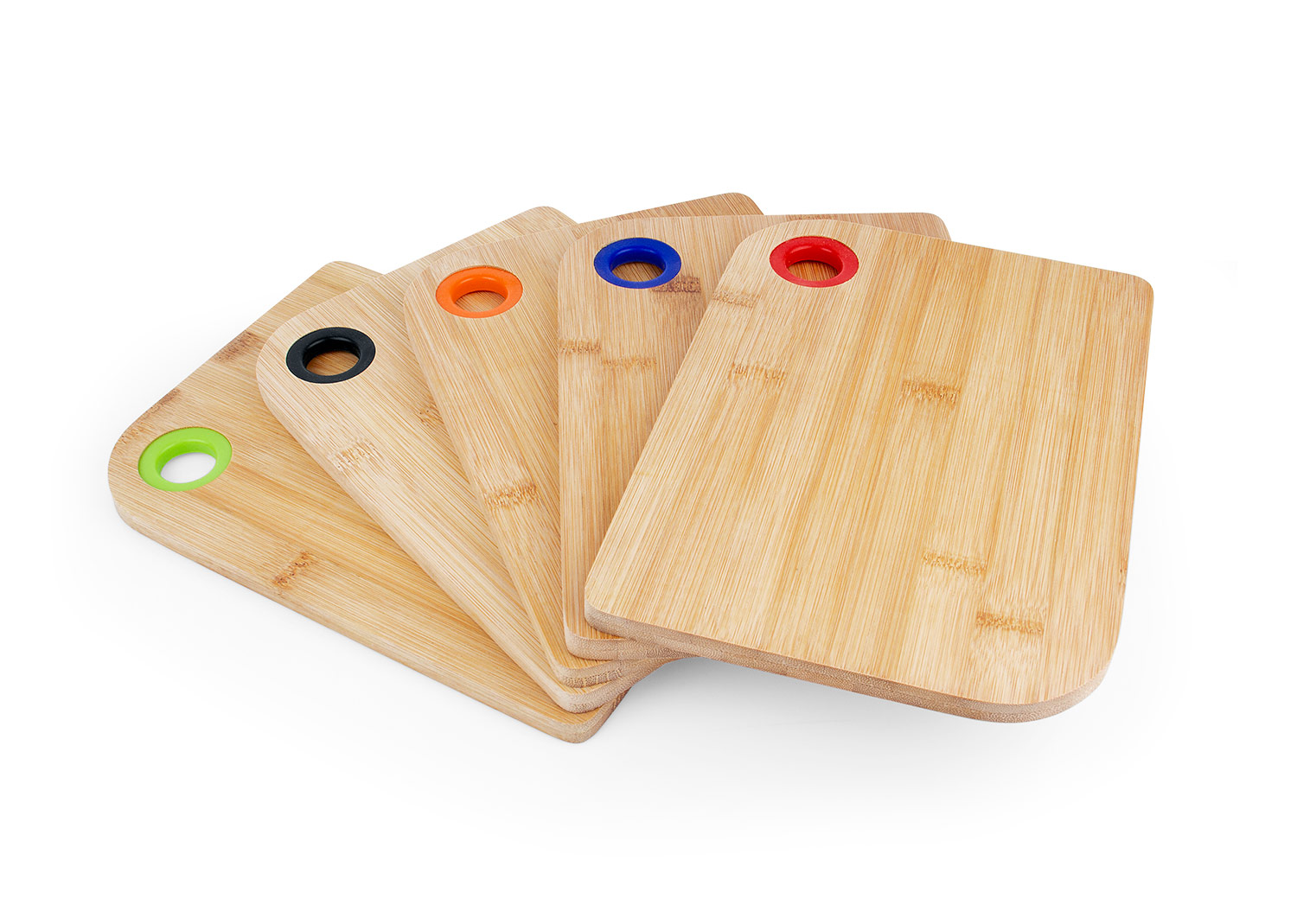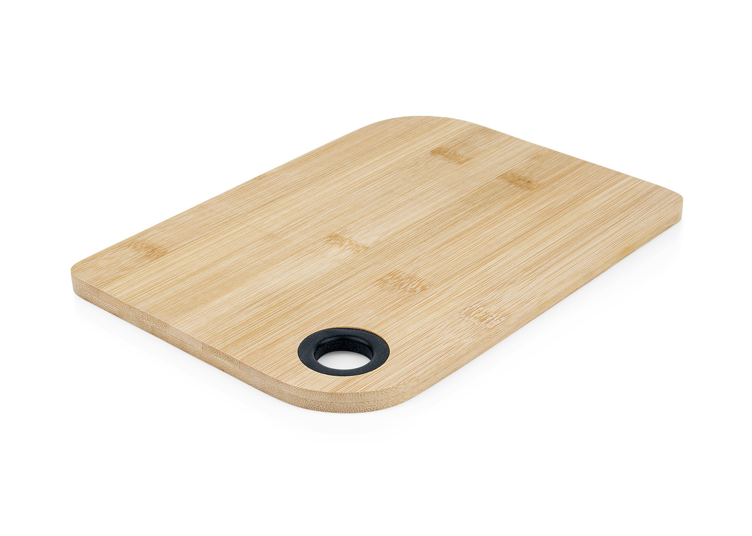Tabla de Picar en bambú con anillo en silicona. Lavar con agua y jabón y secar al aire libre.